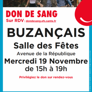 Don de sang, le mercredi 19 novembre 2025 de 15h à 19h à la Salle des ...